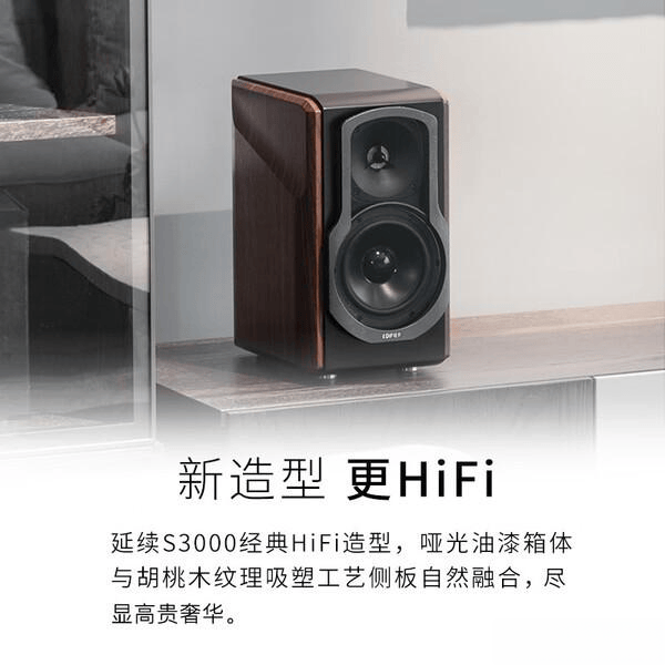 独特的设计:这款音箱采用原创外观和北美黑胡桃木支架,结合暗线卡槽设计,有效隐藏电源线,保持整体的美感。质感蒙布与美学设计纹理搭配,使其在音质传播和外观上都十分出色。