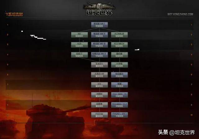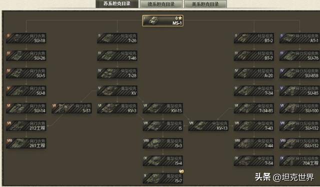 每条线路分支很简单,大多以中型坦克(MT)和重型坦克(HT)为主线,坦克歼击车(TD)和自行火炮(SPG)为副线。