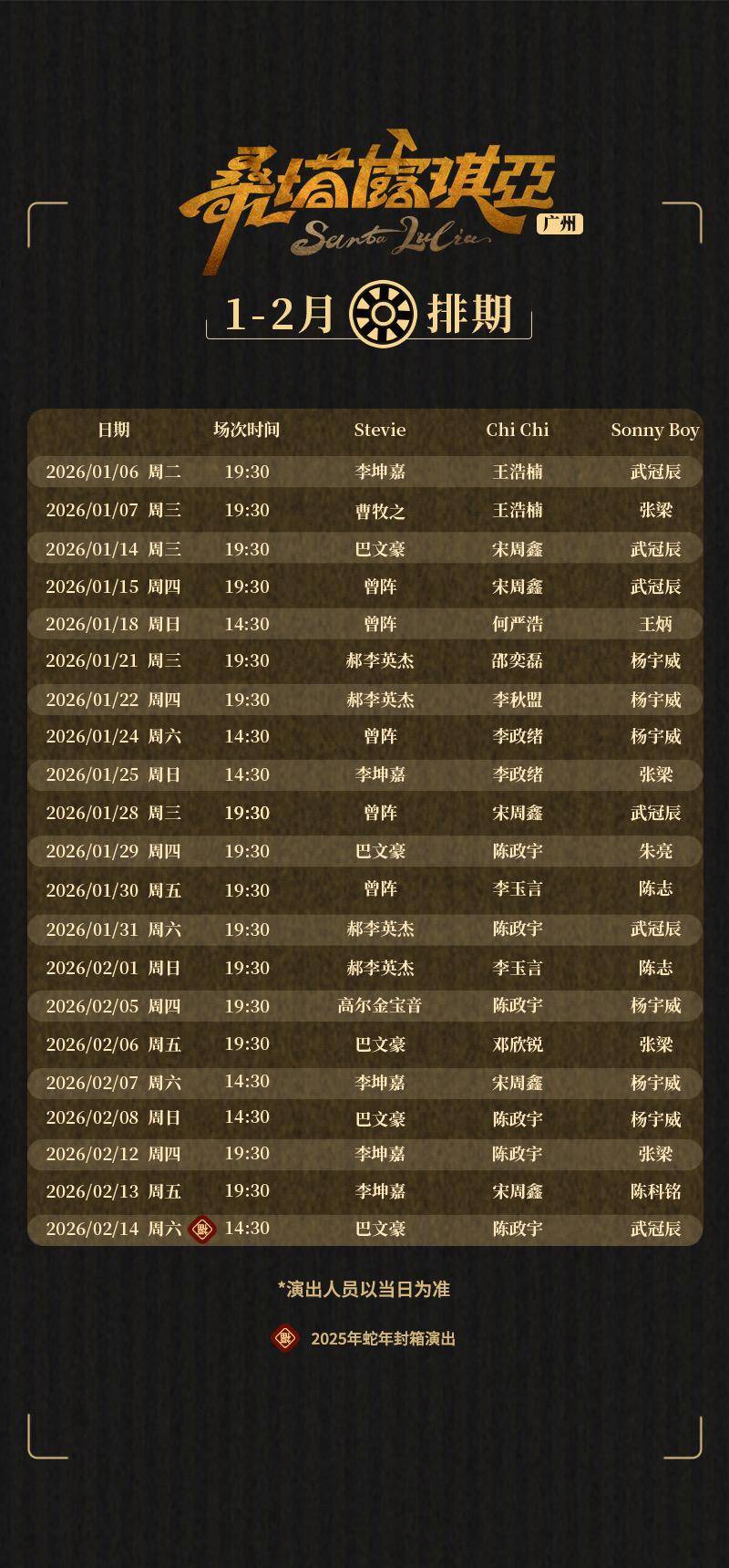 据了解,此次展演季涵盖30个优质演艺项目,从沉浸式戏剧的新奇体验到音乐现场的潮流律动,从脱口秀、魔术的欢乐氛围到文旅演艺的视听盛宴,多元演艺形式将在全省各大演艺新空间轮番上演,不仅为市民游客献上兼具文化底蕴与创新活力的艺术大餐,更以“演艺+文旅”的融合模式,为正在全省开展的“粤享暖冬 乐游广东”消费季注入动能,让大众在演艺光影中感受岭南文化的独特魅力与新年的喜庆氛围。