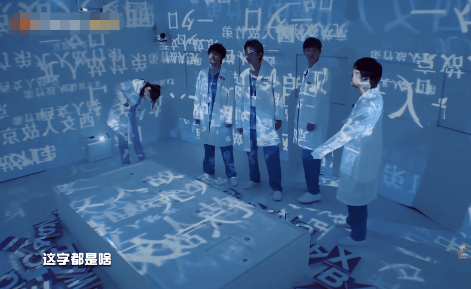 因为这个破解密码还是挺难的,所以大家也是在努力思考,而且这个房子比较小,墙上的字看多了就是会觉得头晕。正当大家都觉得解不开密码而头疼的时候,邓伦就下意识坐了下来,跟成员们一起想密码。