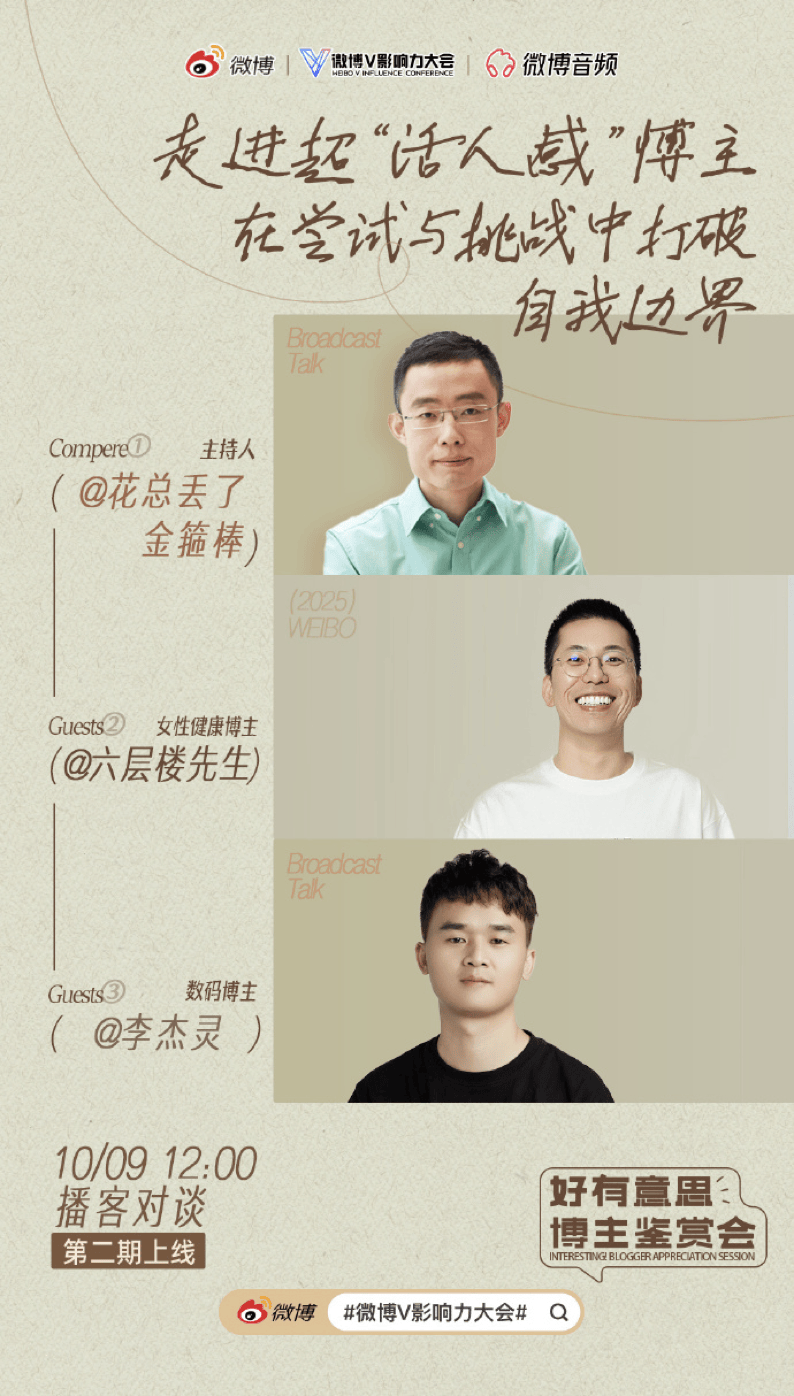 本届大会不仅聚焦行业与创作者,更注重粉丝体验与社交互动。在线上,策划了#好有意思博主鉴赏会#主题活动,由深度观察博主@花总丢了金箍棒 主持,以深度音频对谈的形式,邀请了@陈震同学、@酷酷的滕、@六层楼先生 等不同领域的头部创作者,分享创作理念、成长经历与生活态度,强调“真诚是分享的底色”,引发了网友的广泛共鸣。活动还通过投稿大赛等进一步调动了全站创作者的参与热情,持续扩大了声量。