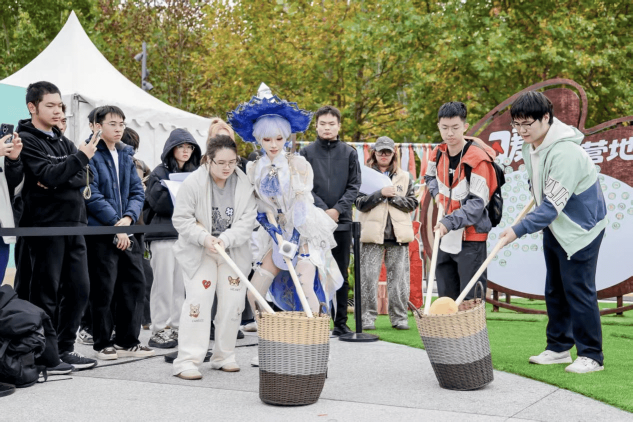 各部落玩法丰富多样,包括部落专属游戏赚彩石、神秘NPC盖印章、集章兑换限定纪念品等沉浸式任务。粉丝与心仪博主面对面参与游戏挑战、主题对谈,或在美妆教学、星座解读、手作体验等兴趣工坊中近距离交流,实现了从线上关注到线下深度连接,现场高能不断。@女王盐 在卧底游戏中展现E人属性,现场秒变演技修罗场;她还与粉丝戴耳机狂舞,魔性BGM配上迷惑节奏,有人跳成人体电风扇,有人僵成复读机,气氛嗨到不行。@吕艳婷和吕老师 则再现小哪吒烟熏嗓,被赞被配音耽误的方言大师,反差萌十足。@三狗-宋木子、@三狗-合文俊、@三狗-李飞 组成的喜剧人“三狗”组合,更是发挥了搞笑天赋,三人一出场,现场的欢乐浓度直接拉满。此外,现场还设置了全员舞会、主题布景打卡、随机音乐即兴互动等压轴狂欢环节,互动热度爆表。